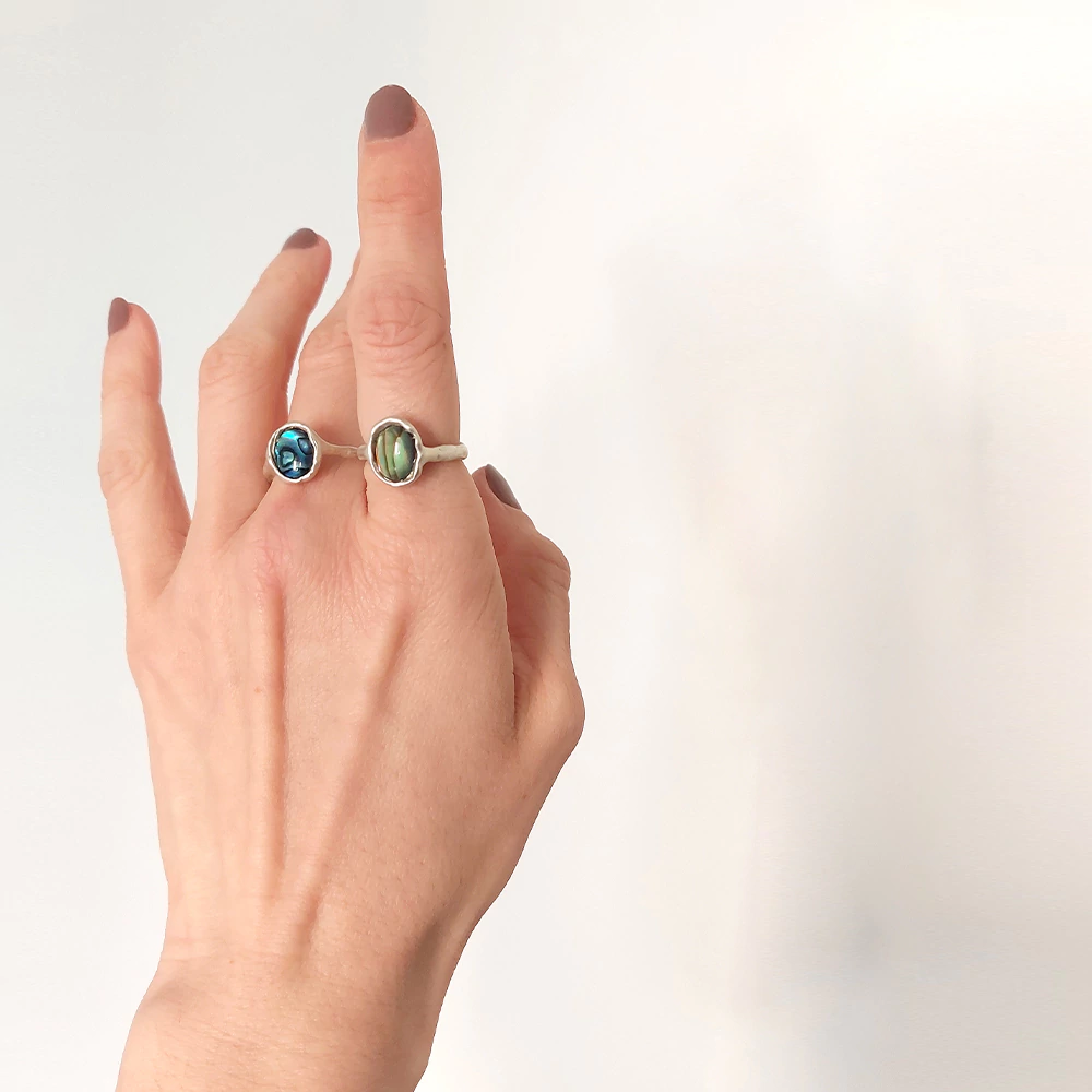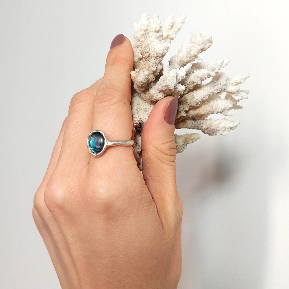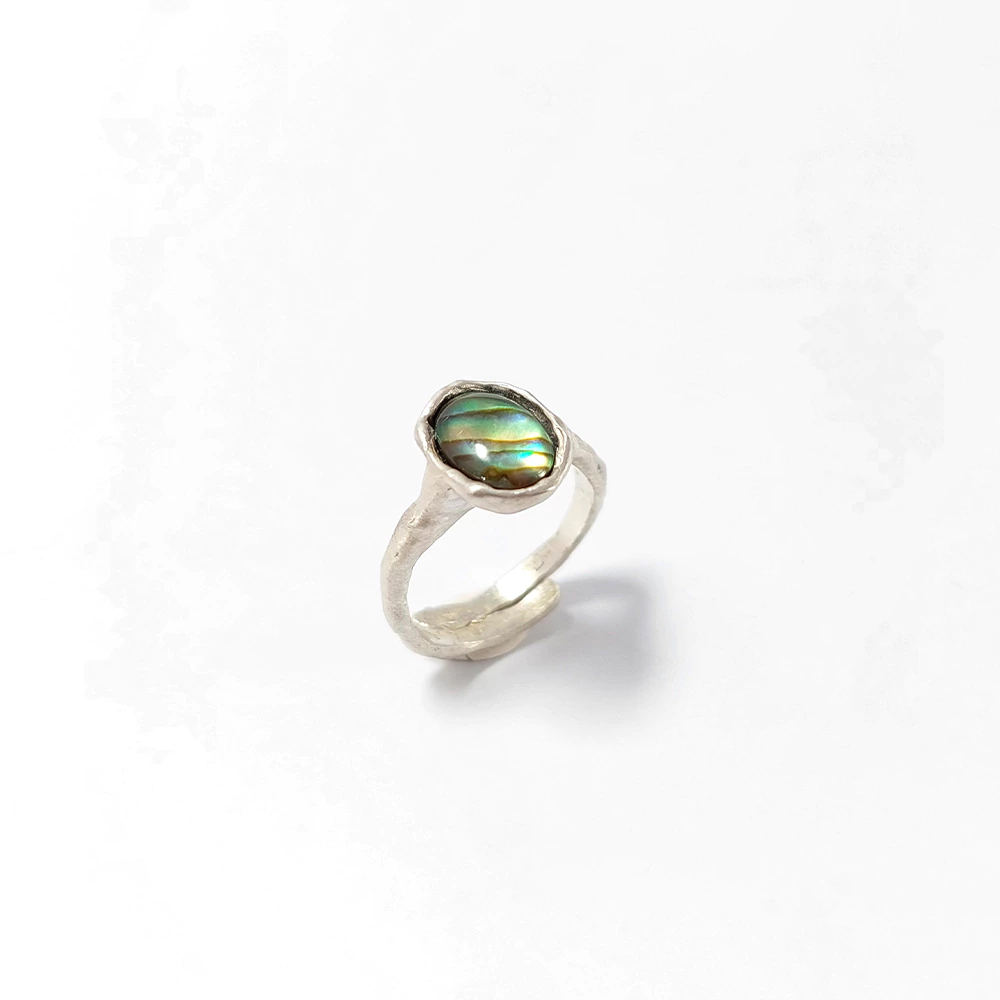 Anel em prata 950 com um abalone oval de aproximadamente 9x7mm.