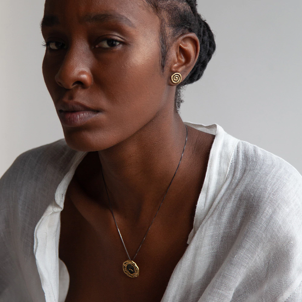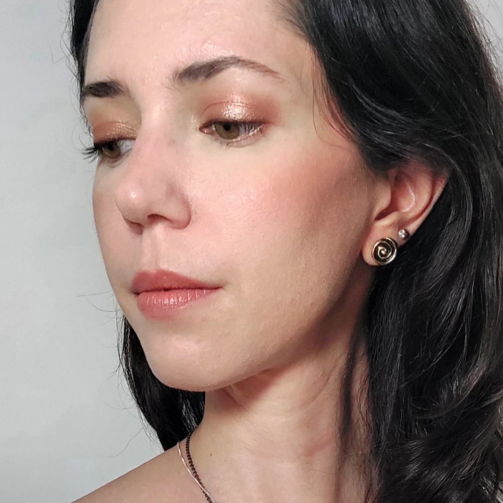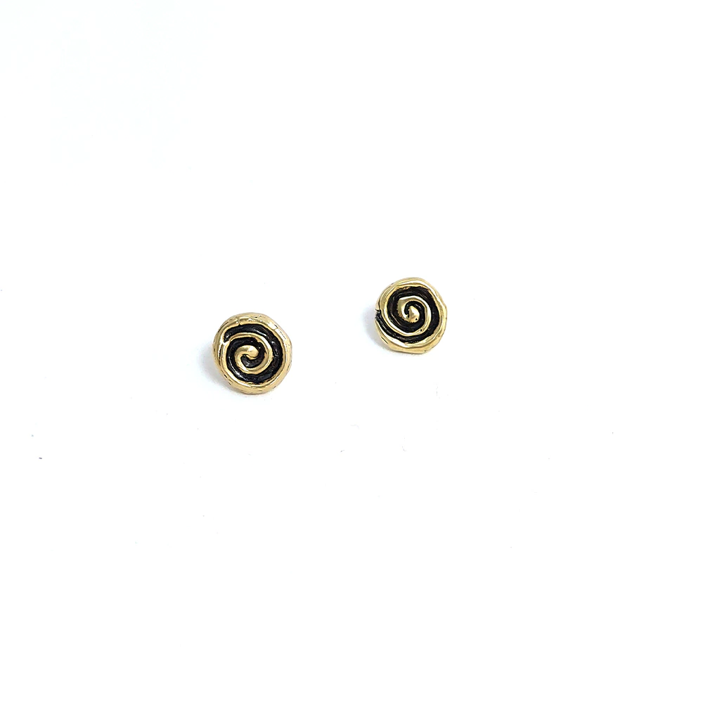 Brinco em latão bruto, com pinos em prata. Tamanho aproximado de 1,3cm de diâmetro.