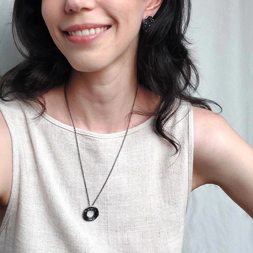 Pingente em prata 950 com aproximadamente 2cm de diâmetro. Acabamento fosco oxidado.